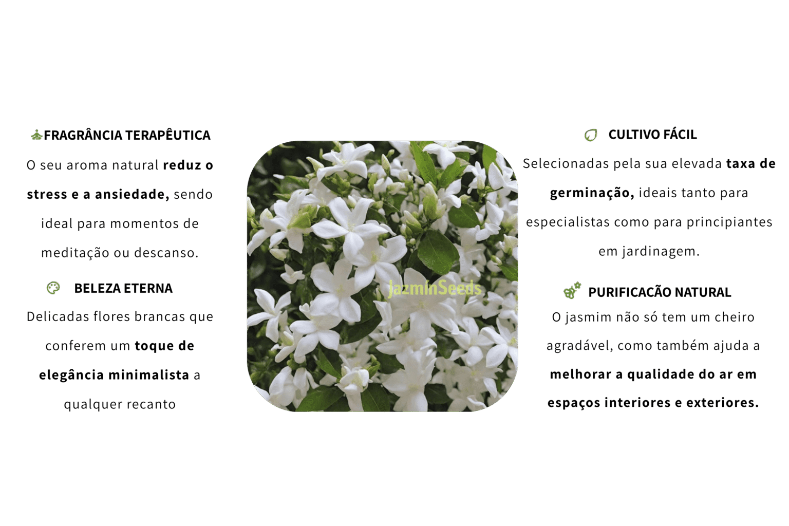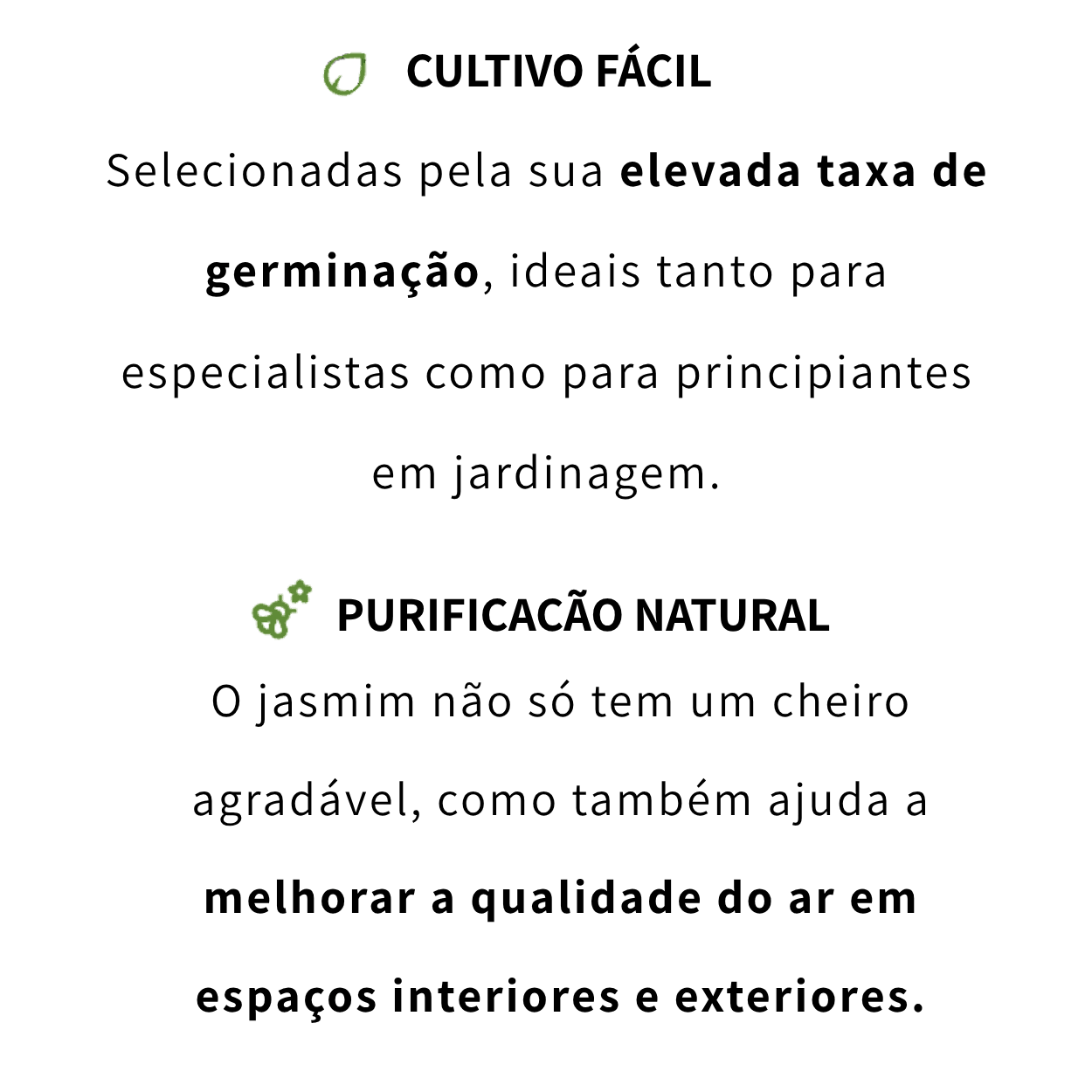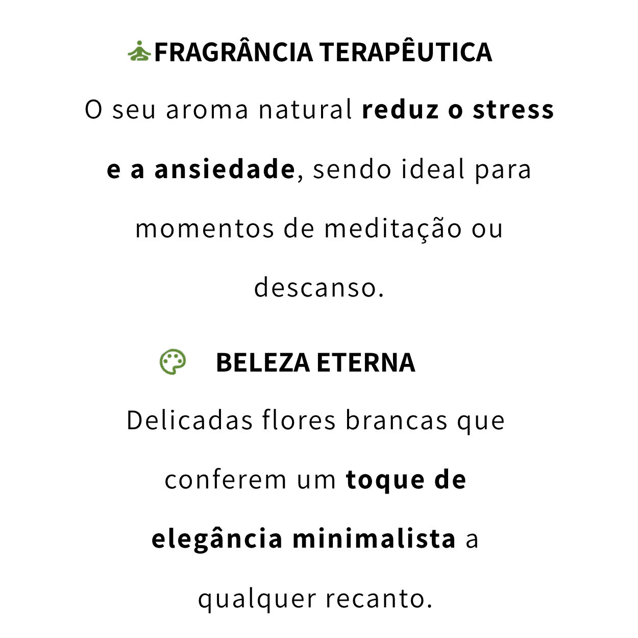 O jasmim exala uma fragrância profunda e relaxante, conhecida como o «perfume de Deus», que perfuma a sua casa de forma natural e elegante, sem produtos químicos.