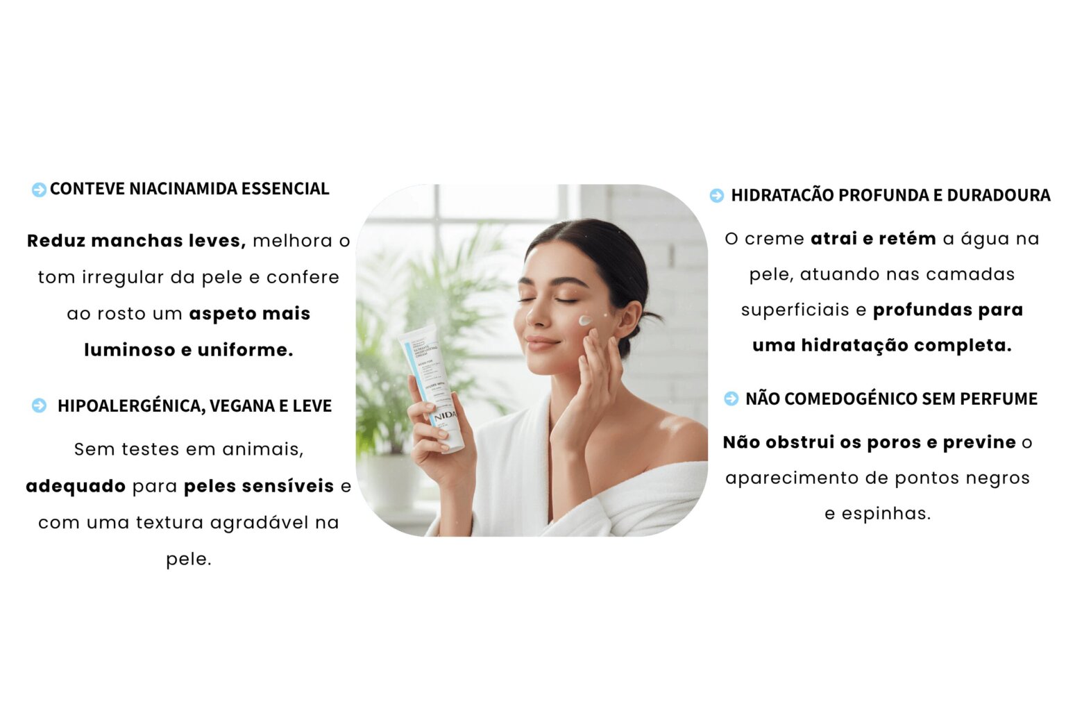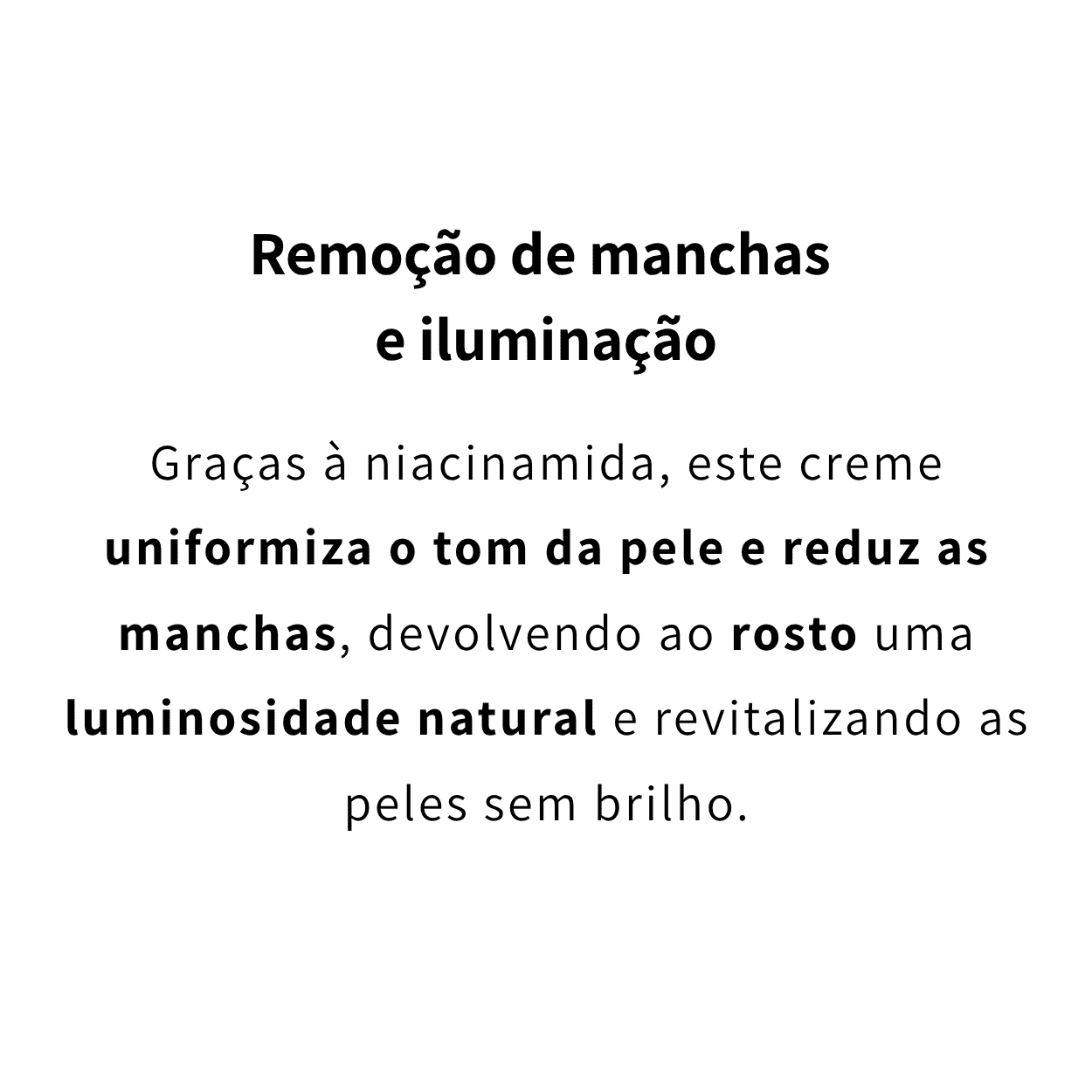 Niacinamida que ilumina e uniformiza o tom da pele.