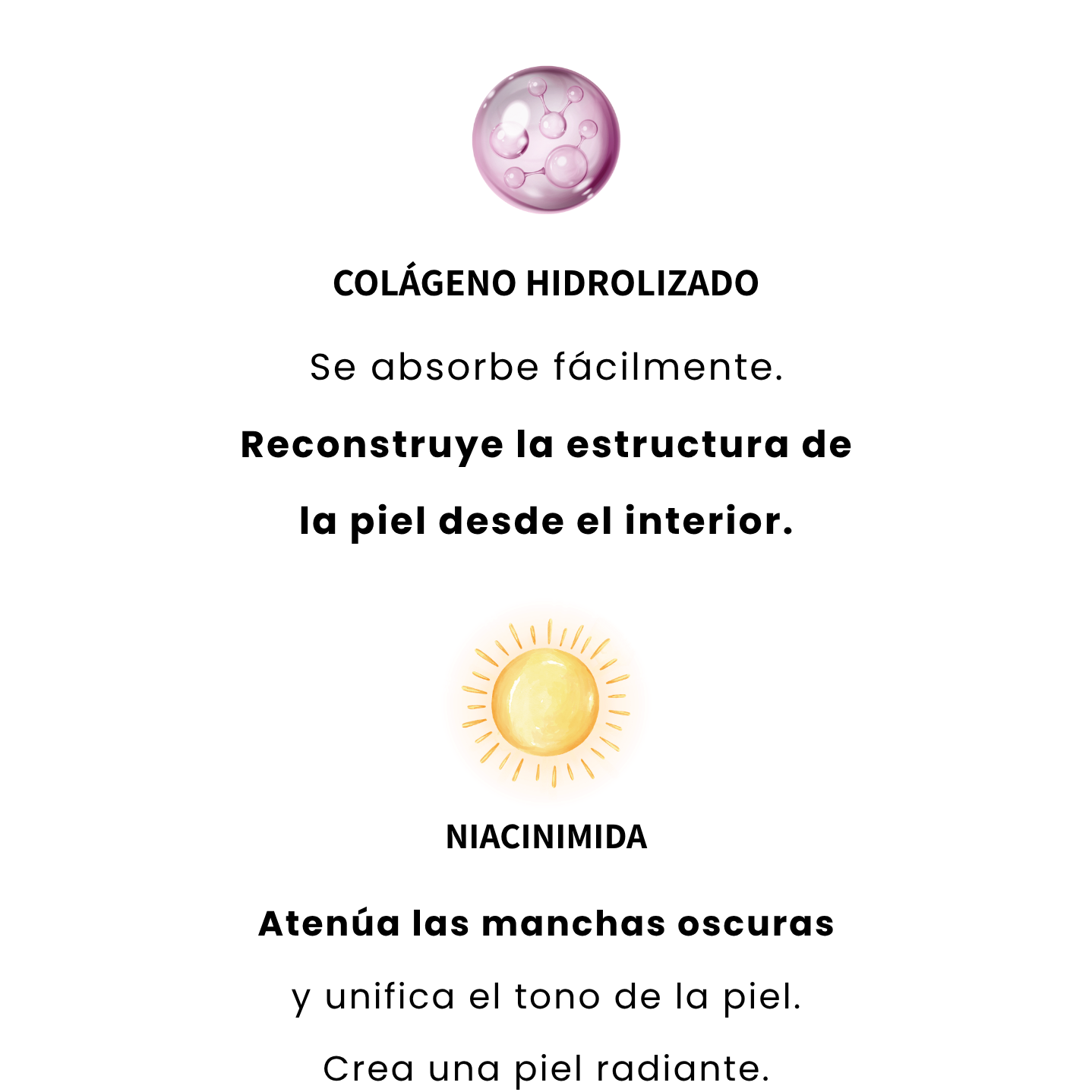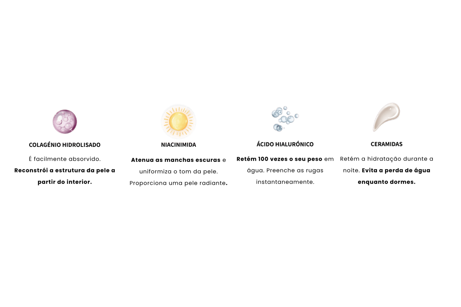 Colagénio: Reconstrói a estrutura da pele a partir do interior.